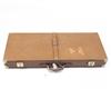 A FAUX LEATHER DOUBLE GUNCASE, fitted for 30in. barrels, the interior lined with red baize, two locks (key missing),
