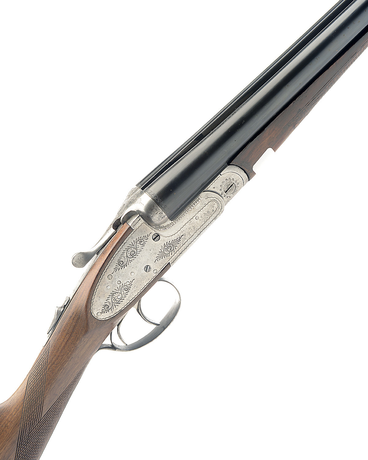 J.M. URRIOLA SARASQUETA 12-BORE SIDELOCK EJECTOR, serial no. 3169, 28 1/4in. nitro barrels, 2 3/4in. chambers, bored approx. 3/4 and full choke, treble-grip action with hidden third bite, gas checks, automatic safety, cocking indicators, border and partial scroll engraving, 14in. stock, fore-end wood split