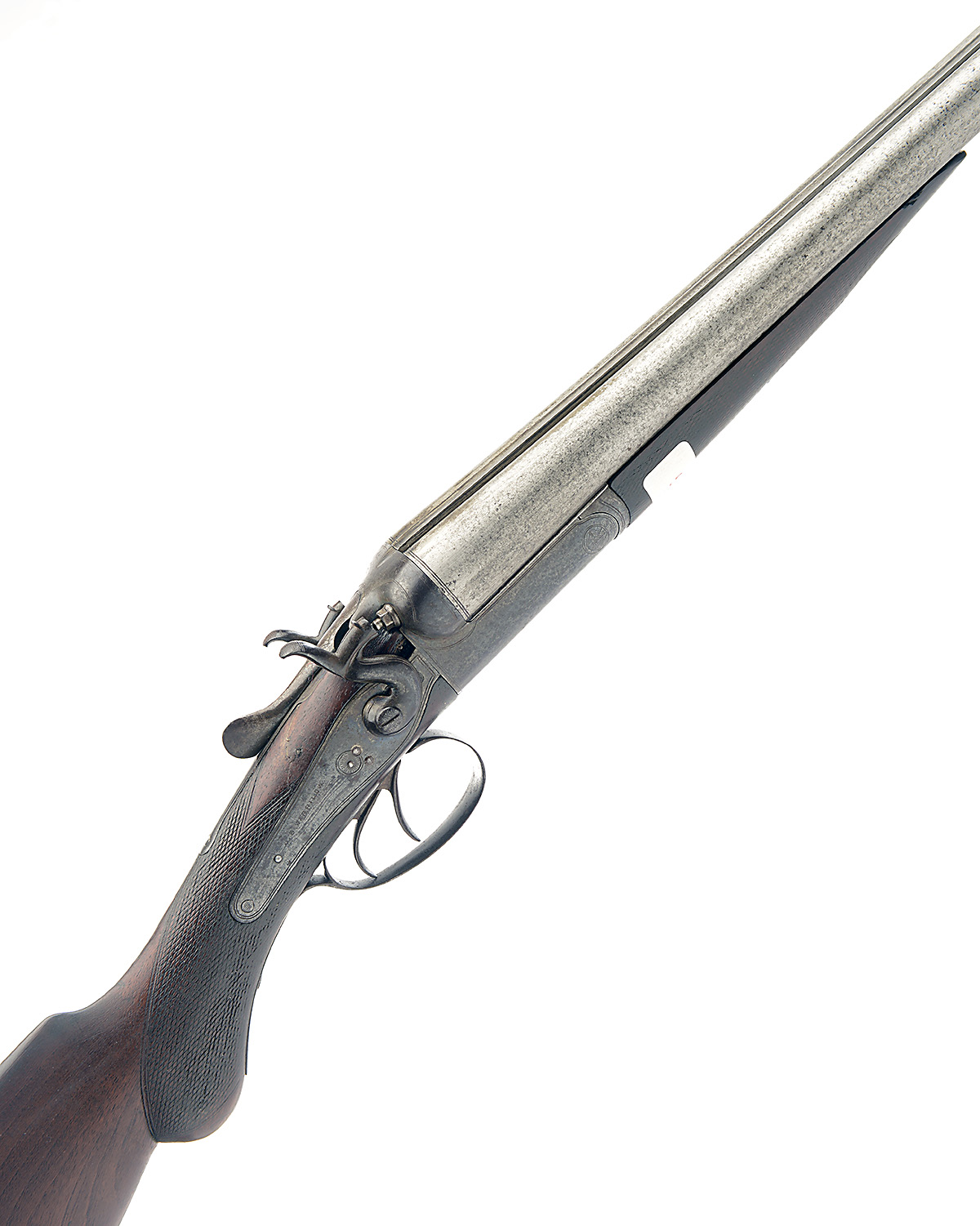 J.B. WARRILOW 12-BORE TOPLEVER HAMMERGUN, serial no. 28902, serial number on short rib only, 30in. nitro barrels (pitted), 2 1/2in. chambers, bored approx. true cyl. in both, 13 3/4in,. semi-pistolgrip stock including buttplate