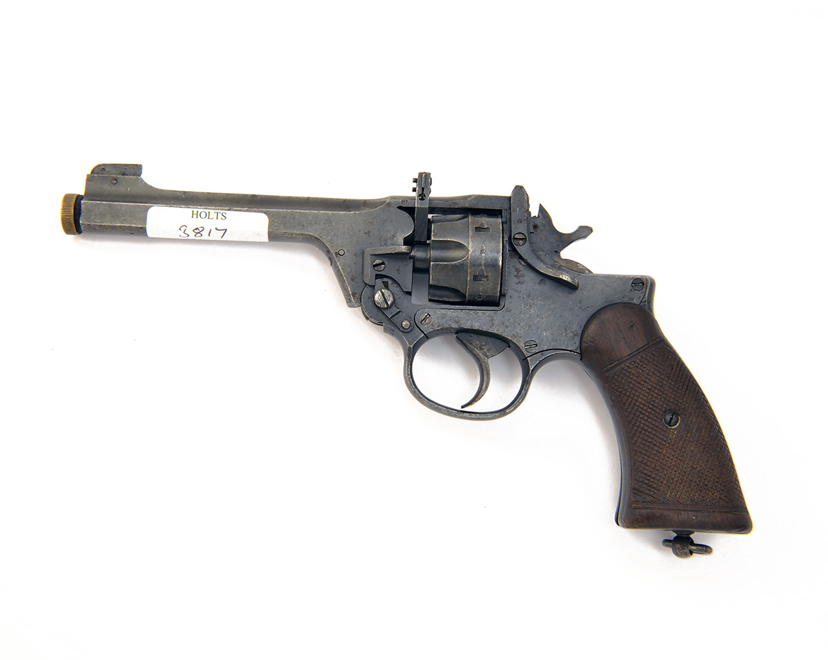 A .22 (R/F) SIX-SHOT REVOLVER SIGNED ENFIELD, MODEL 'PARKER-HALE CONVERSION OF THE No2 MKI*', serial no. N9732, the revolver dated for 1941, with detachable barrel liner, drift adjustable rear-sight, break-open frame with angled chamber automatic ejecting cylinder, chequered walnut grips and strong amount of finish