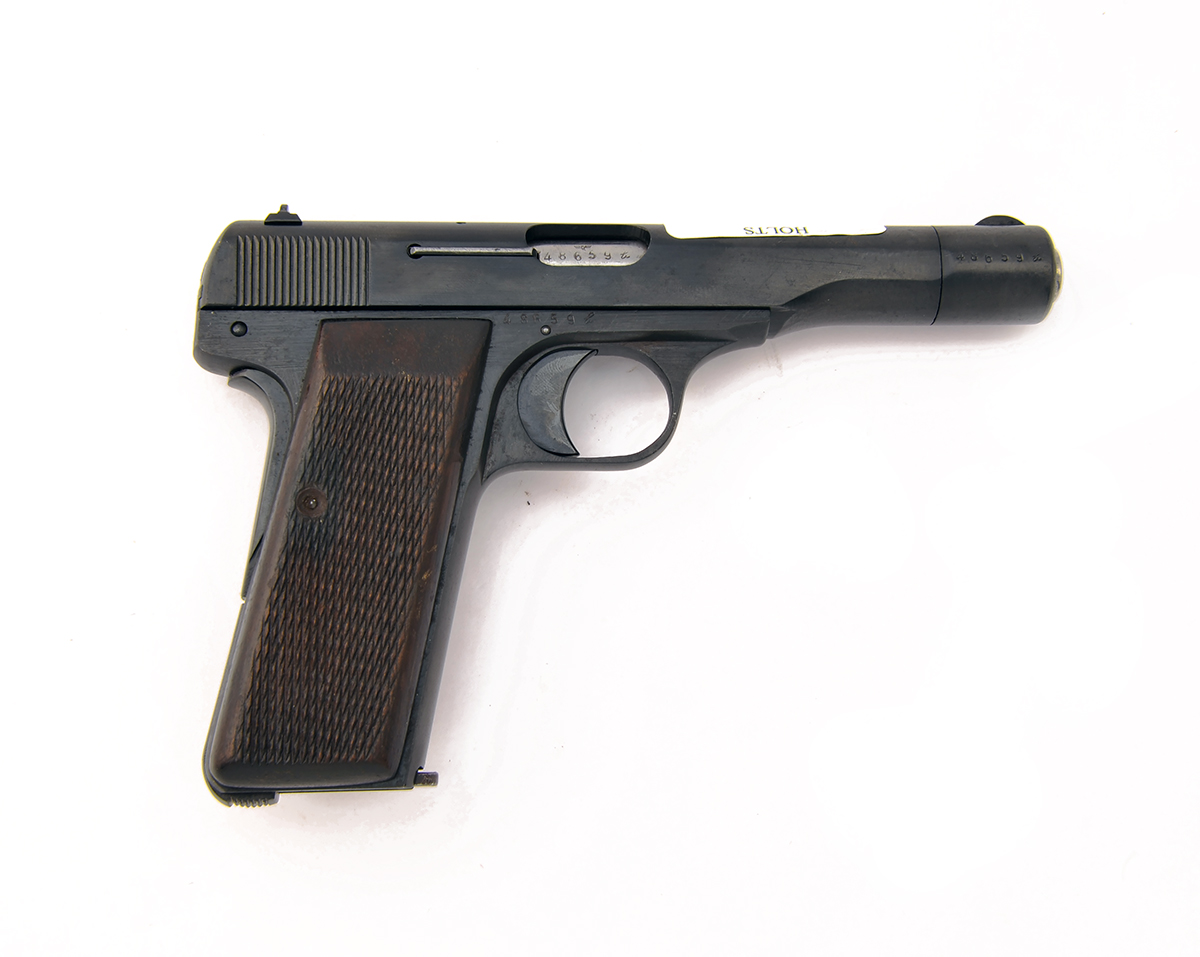 A .32(ACP) SEMI-AUTOMATIC PISTOL SIGNED F.N., MODEL 'OCCUPATION PRODUCED M1922 BROWNING', serial no. 48659, with 4 1/4in. barrel, detachable nose-piece for field stripping, waffenampt marks to slide, nose-cap and frame, chequered walnut slab grips and grip-safe, re-blued in antiquity