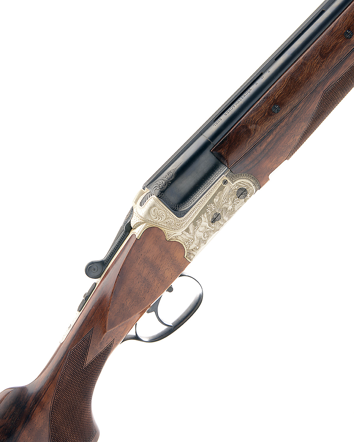 circa 1967, 25 7/8in. nitro reproved barrels (in 2020) with 8mm finely file cut raised ventilated top-rib, 2 3/4in. chambers, bored approx. 1/4 choke in both, three-piece fore-end with wooden side fillets, lightweight alloy quadruple-grip scroll-back action with side bolsters, removable striker bar, the toplever engraved 'DURAL', manual safety, selective single trigger, Germanic scroll engraving with game scenes of a bird of prey attacking mallard and fox stalking partridge, the underside with 'HUBERTUS SUHL', 14 3/4in. pistolgrip stock with cheekpiece, weight 6lb. 9oz.