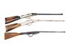 all of 'Gem' or composite 'Gem' form, the first with 18 3/4in. barrel with flat sighting plane, the breech-block marked 'E' over '6' and 'J. ESCHMANN, HERISAU', long barrel release lever mounted to the slanted air-chamber, walnut butt-stock and a strong amount of nickel-plated finish remaining, the second similar but with octagonal to round blued barrel of the same length, push-button dolls-head release to breech, plated air-chamber and walnut butt-stock, the last of composite form with 17 1/4in. octagonal to round barrel, push button 'Millita' style barrel release, almost in-line air-chamber and walnut butt-stock, all with minor losses and small replacement parts