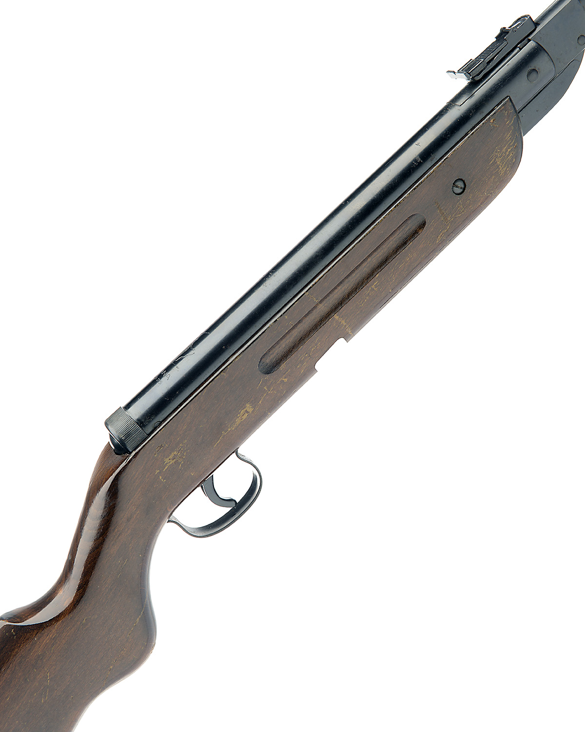 1950's production, with blued 15 3/4in. sighted barrel, blued air-chamber without provision for telescopic sight and beech half-stock, much original finish remaining