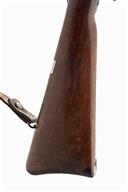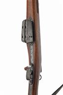 with blued 30 3/4 in barrel, block and blade front-sight and quadrant rear-sight, fluted receiver with toggle-handled straight pull bolt, ring safety to rear and box magazine, regulation iron mounted full walnut stock with two barrel bands, all matching numbers.