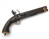 built circa 1825 for the Nizam Of Hyderabad's arsenal and one of a number retailed in the 1970's by Holland & Holland, with round unsighted 9in. barrel, London proofs, solid top-tang, Baker style lock with rampant lion trademark, semi-rainproof pan and ring-necked cock, walnut full-stock, heavy brass furniture including flat heel-cap with central iron lanyard ring, trigger-guard, three-screw sideplate and nose-cap with spring ramrod retainer, the captive iron ramrod with pan head and together with a copy of the Holland & Holland catalogue 'The Nizam's Cavalry Pistols As Trophies Of Arms'