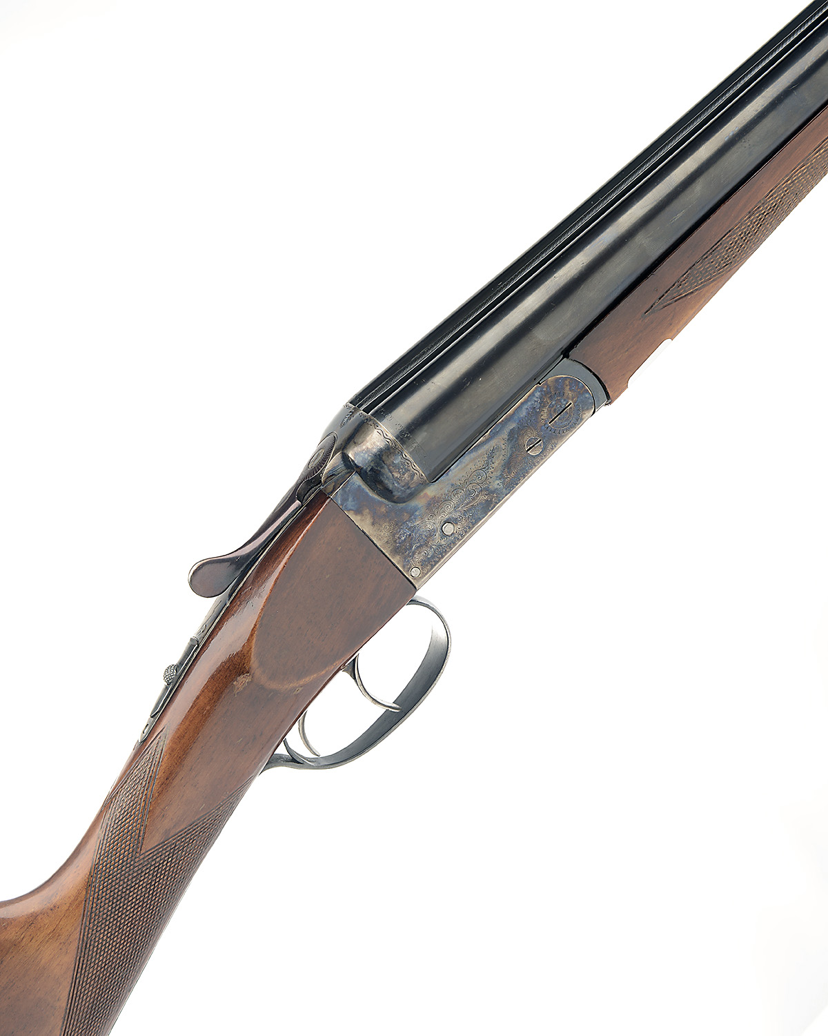 SPANISH 12-BORE BOXLOCK EJECTOR, serial no. 93440, 26in. nitro barrels, 2 3/4in. chambers, bored approx. true and imp. cyl., treble-grip action with hidden third bite, removable striker discs, automatic safety, acanthus scroll engraving, retaining some original colour-hardening and finish, 14 3/4in. stock
