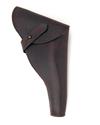 dated for 1918, with blued 6in. barrel, ramp fore-sight, rear-sight notch to barrel latch, break-open frame with automatic ejecting fluted cylinder, blacked ancillaries, double action mechanism and chequered hard rubber grips with lanyard ring at heel, much original finish remaining, complete with a leather full-flap service holster.