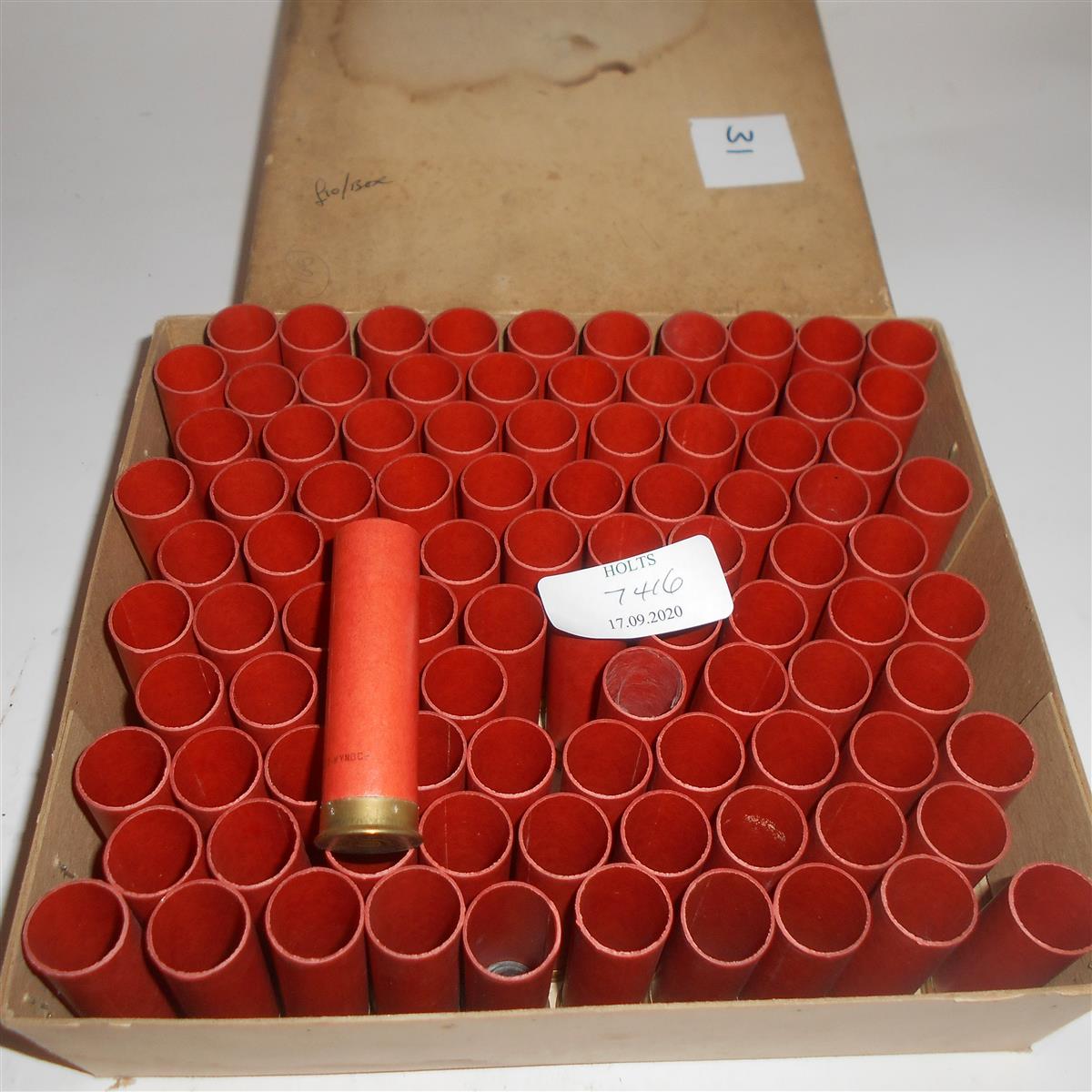96 PRIMED UNUSED 12 BORE 2 3/4in. PAPER CASES BY ELEY KYNOCH IN ORIGINAL UNPRINTED CARTON Please note: Cartridges, primers and primed cases cannot be posted, if you purchase a Lot, please contact our shipping department to arrange a collection at any of our valuation days around the UK or collect from our despatch department in Wolferton PE31 6HA