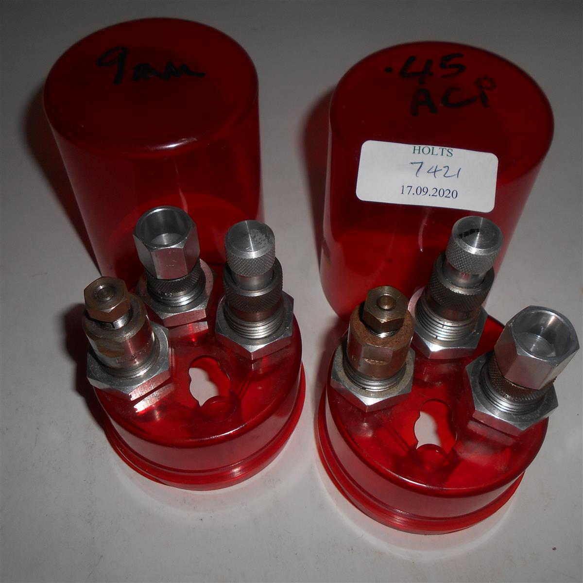 TWO LEE STEEL PISTOL 3 DIE SETS, 9MM AND 45 ACP Some corrosion present