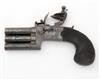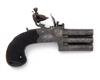A RARE 140-BORE FLINTLOCK TRIPLE-BARRELLED OVER-UNDER TAP-ACTION POCKET-PISTOL, no visible serial number,