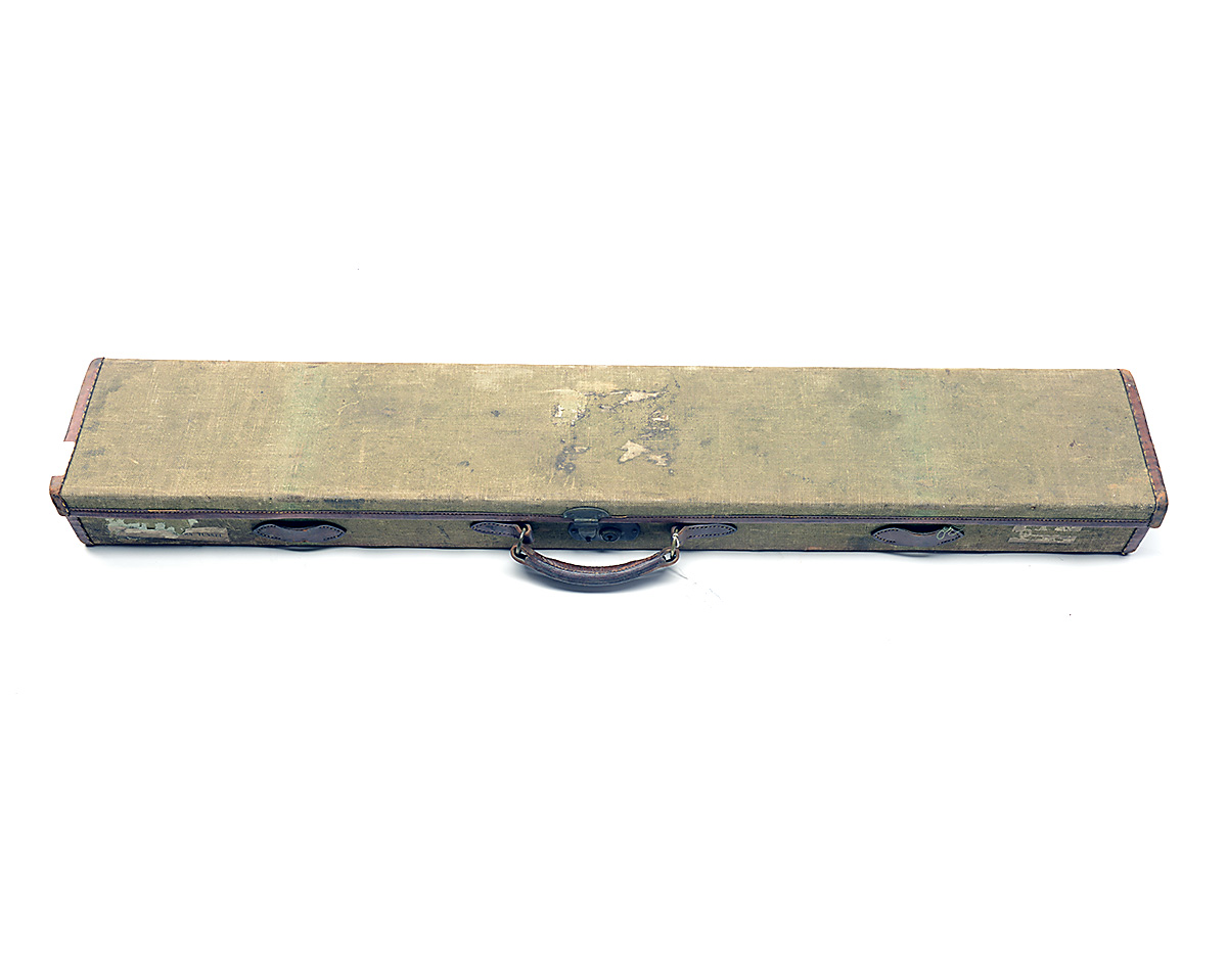 A GREEN CANVAS AND LEATHER FULL LENGTH RIFLE CASE,