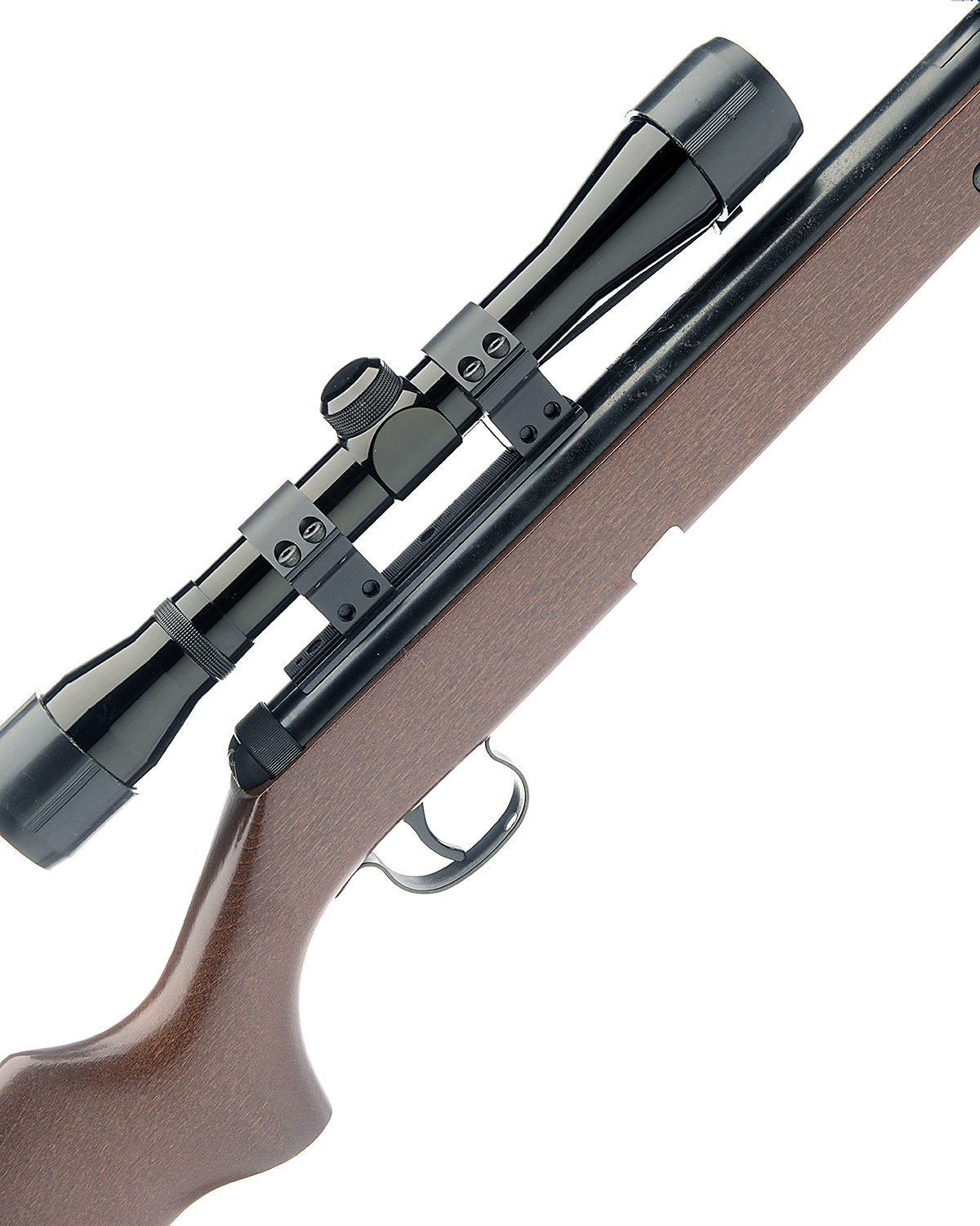 A .22 BREAK-BARREL AIR-RIFLE SIGNED DIANA, MODEL '24', serial no. 03034307, dated for 1992, with blued and sighted 17in. barrel, blued air-chamber with applied telescopic sight rail and plain beech half-stock, much finish remaining