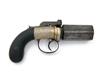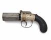 A 54-BORE PERCUSSION PEPPER-BOX REVOLVER WITH NICKEL BODY SIGNED C. MAYBURY, no visible serial number,