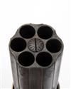 circa 1845, with fully fluted 3in. barrel group, scroll engraving to the muzzles, border engraving at breech, the barrels numbered '1' through '6' respectively, Birmingham proofs, fully scroll and border engraved rounded boxlock central bar-hammer action with integral moulded nipple-guard, sliding safe behind hammer, finely chequered ebony grips backstrap with bag-shaped frame and iron trigger-guard bow