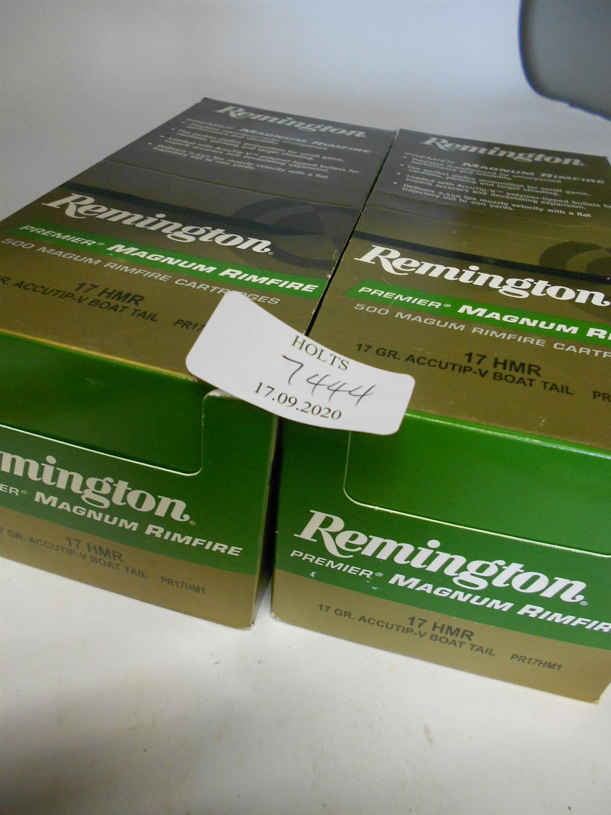 1000 .17 HMR AMMUNITION BY REMINGTON 17 grn. ACCUTIP-V BT Please note: Cartridges, primers and primed cases cannot be posted, if you purchase a Lot, please contact our shipping department to arrange a collection at any of our valuation days around the UK or collect from our despatch department in Wolferton PE31 6HA