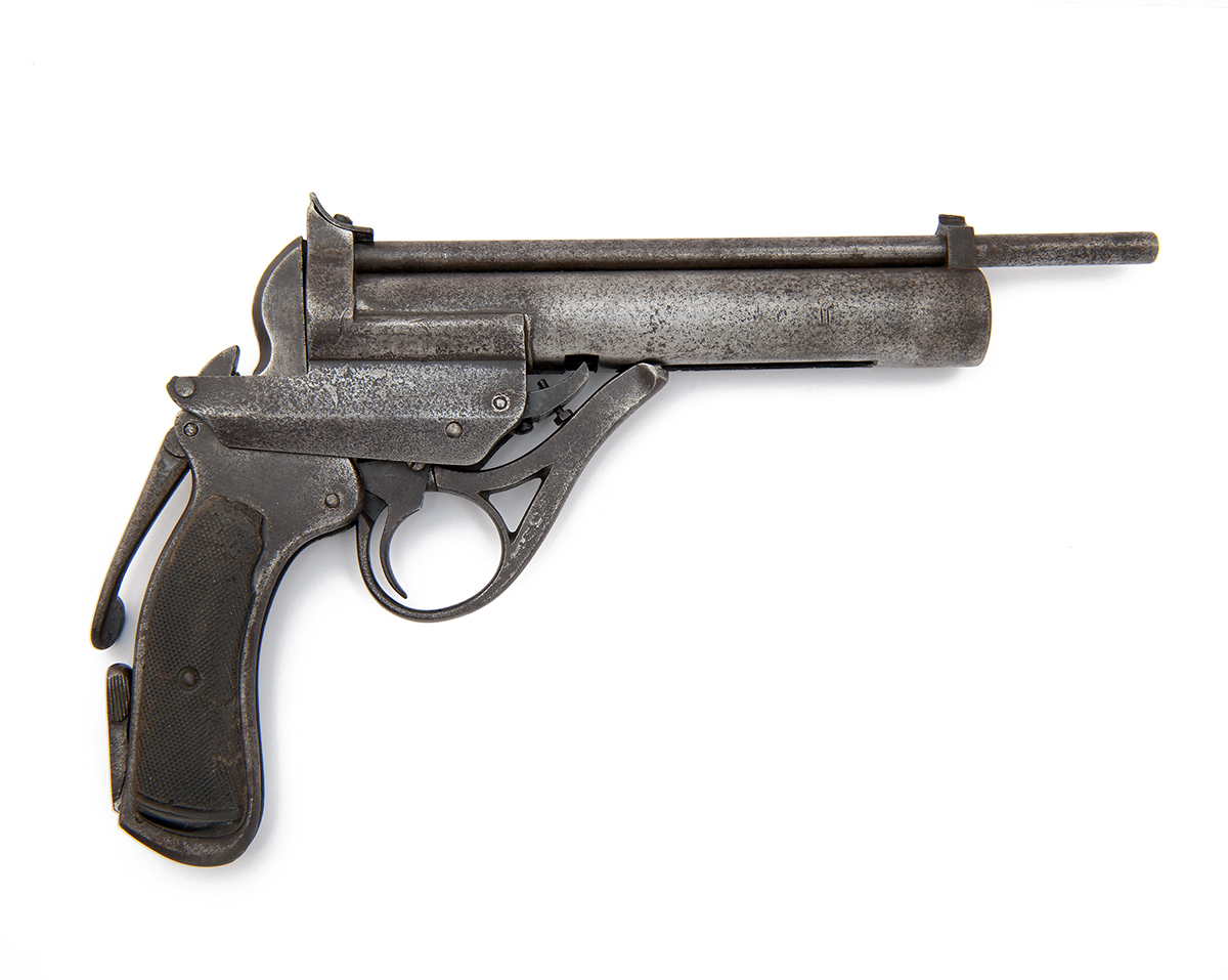 Provenance: Interestingly, this is one of the highest numbers recorded for the standard 'Highest Possible' model. Serial numbers 1034 and 1055 both belong to the much later and rarer concentric piston version which were not produced until the mid 1920's, by speculation long after the production had ceased on the standard model. This pistol may finally be the proof collector's have been seeking that this and the concentric piston model were produced alongside each other, if only for a very short time.