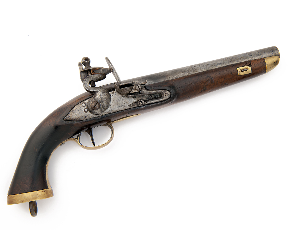 A .695 FLINTLOCK SINGLE-SHOT SERVICE-PISTOL, UNSIGNED, MODEL BELGIAN SEA SERVICE, no visible serial number,