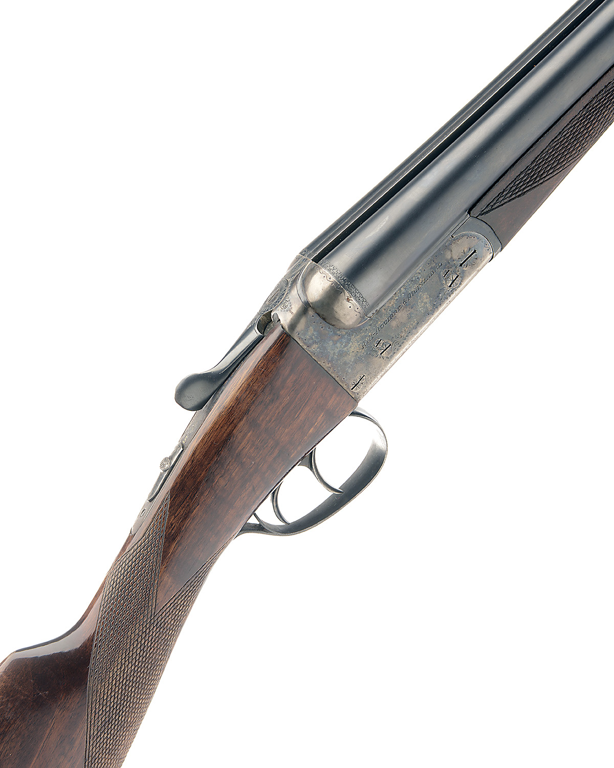 AYA 12-BORE 'NO.4' BOXLOCK EJECTOR, serial no. 551789, 28in. nitro chopperlump barrels, 2 3/4in. chambers, bored approx. true cyl. and 1/4 choke, automatic safety, removable striker discs, border engraving, retaining some original colour-hardening and finish, 14 3/4in. stock, weight 6lb. 7oz., in a Brady canvas and leather case