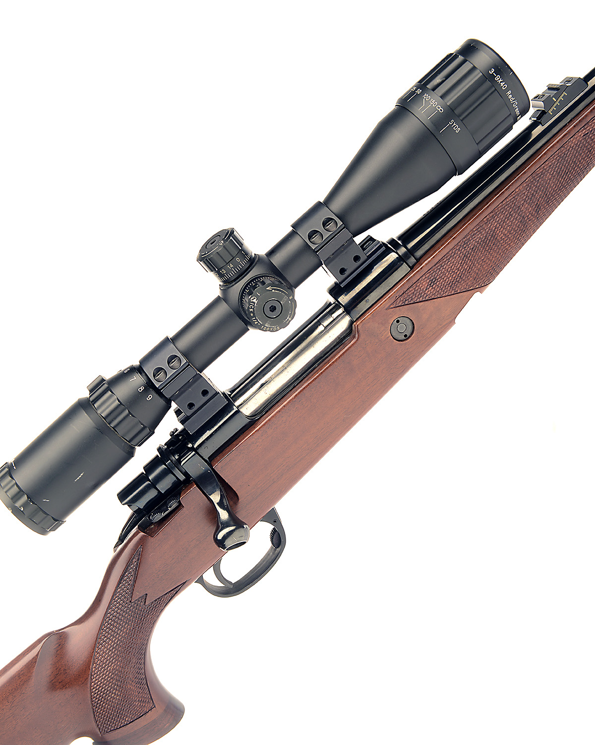 PARKER-HALE .270 WIN. BOLT-MAGAZINE SPORTING RIFLE, serial no. S-32640, 22 1/4in. nitro barrel, ramp-mounted bead fore-sight, rear-sight missing, fitted with a 3-9x40 telescopic sight, manual safety, hinged floorplate embossed with scroll and rams head, 13 7/8in. well-figured pistolgrip stock (including recoil pad)(, sling eyes