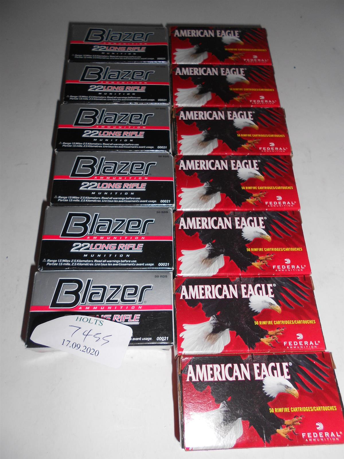 650 ROUNDS .22LR BLAZER AND FEDERAL AMMUNITION SOLID HV Please note: Cartridges, primers and primed cases cannot be posted, if you purchase a Lot, please contact our shipping department to arrange a collection at any of our valuation days around the UK or collect from our despatch department in Wolferton PE31 6HA
