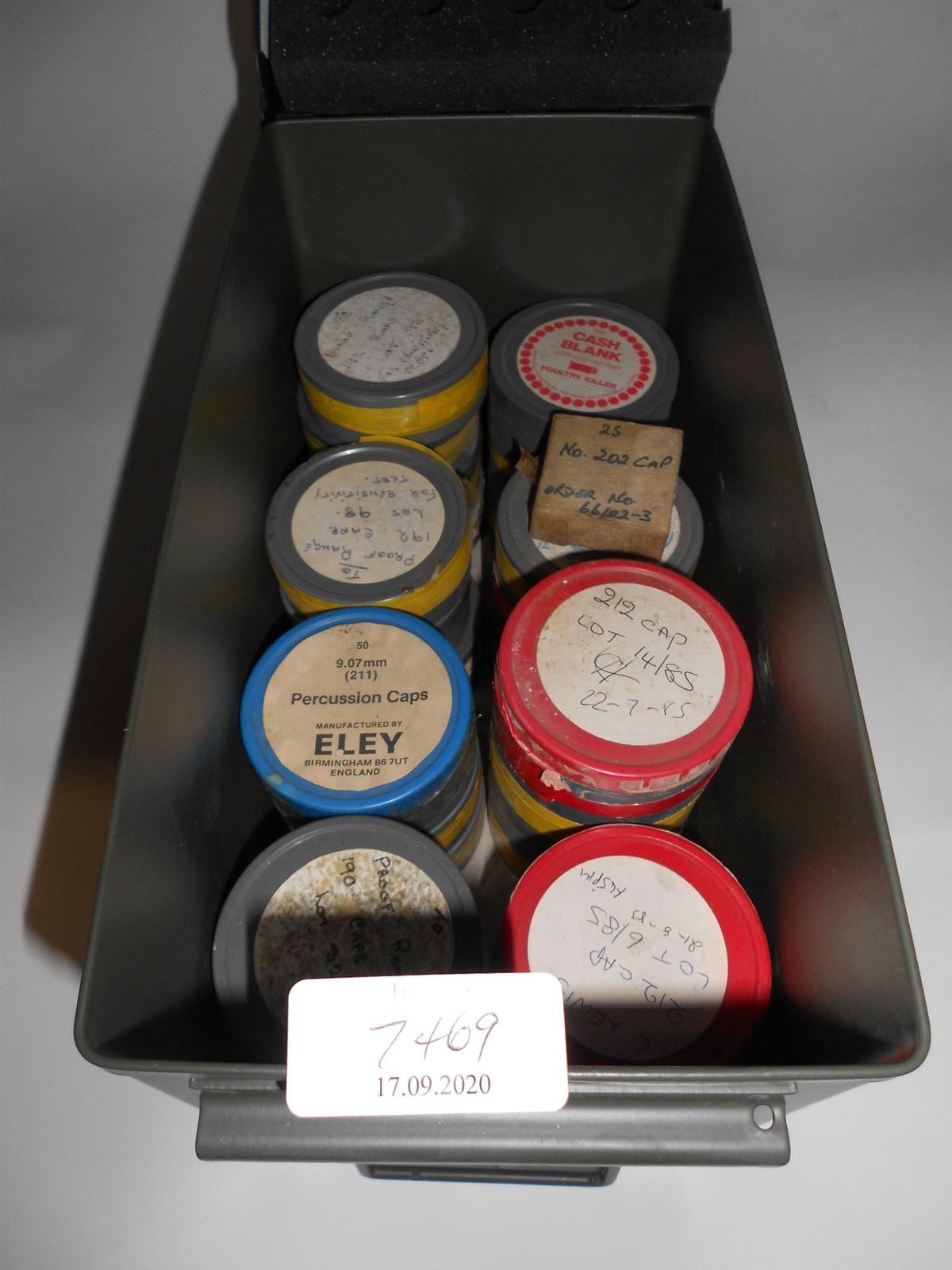 26 CONTAINERS OF FACTORY SAMPLE TINS OF VARIOUS SIZES OF BERDAN PRIMERS BY ELEY IN A FIELD MAGAZINE Please note: Cartridges, primers and primed cases cannot be posted, if you purchase a Lot, please contact our shipping department to arrange a collection at any of our valuation days around the UK or collect from our despatch department in Wolferton PE31 6HA