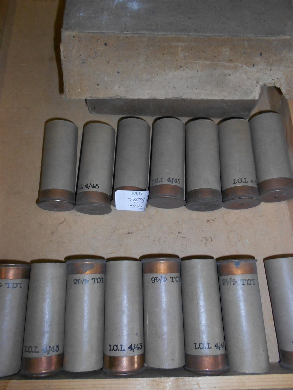 16 I.C.I. 4/45 - 40mm/ 1.5 in. x 100mm/4 in. CARDBOARD SHOTGUN PRIMED COPPER BASED CASES UNUSED WITH PERIOD CARTON Please note: Cartridges, primers and primed cases cannot be posted, if you purchase a Lot, please contact our shipping department to arrange a collection at any of our valuation days around the UK or collect from our despatch department in Wolferton PE31 6HA