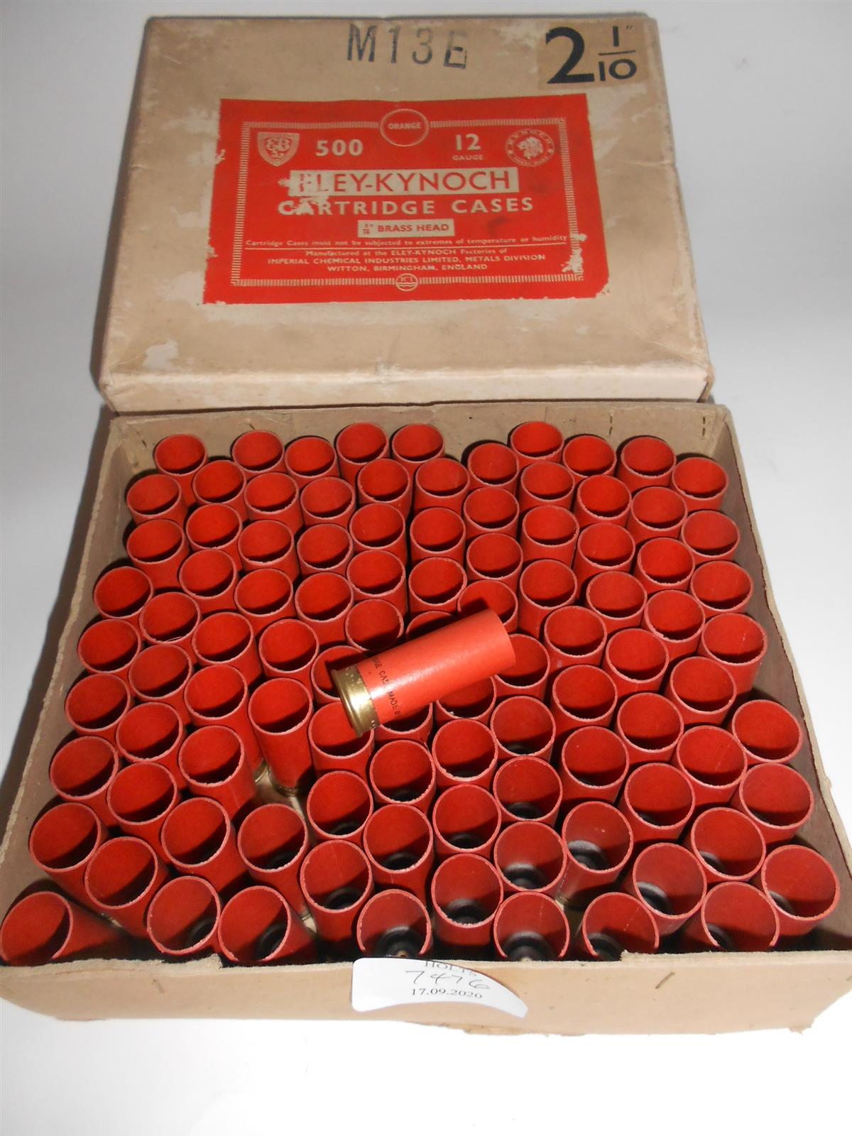 100 12 BORE ELEY 2 1/10 th. in. RARE NEW PRIMED PAPER CASES IN ORIGINAL RETAIL CARTON WITH A MISPRINT ON THE LABEL Please note: Cartridges, primers and primed cases cannot be posted, if you purchase a Lot, please contact our shipping department to arrange a collection at any of our valuation days around the UK or collect from our despatch department in Wolferton PE31 6HA