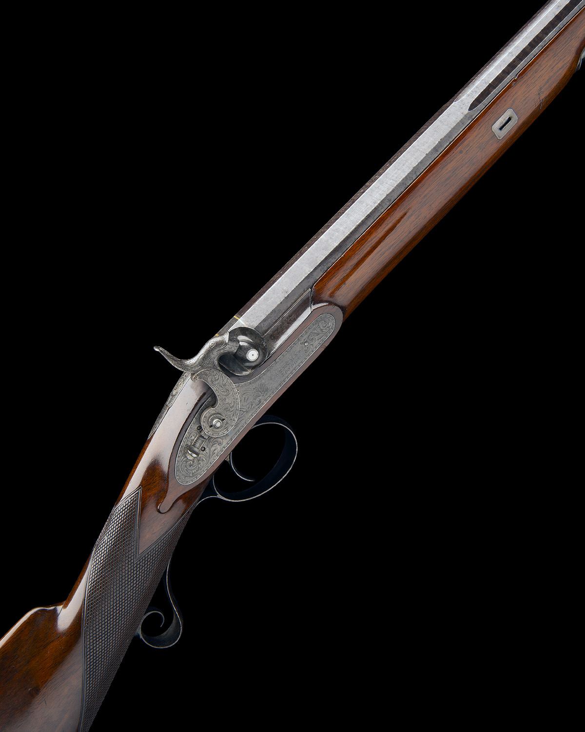 STEVENS, LONDON, A FINE CASED PERCUSSION SPORTING-GUN WITH 18-BORE SHOT & 60-BORE RIFLE-BARRELS, serial no. 1057,