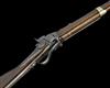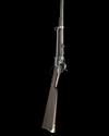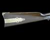 with tapering iron 21 1/2in. (approximate) barrel, applied blade fore-sight, elevating ladder rear-sight, receiver with slanted angle dropping breech, back-action lockplate with tape primer feed, walnut butt-stock with inlet brass patch-box to the right hand side, finger lever forming the trigger-guard bow, walnut splinter fore-end with brass nose-band and iron saddle-bar and ring, finish worn with some loss to written detail