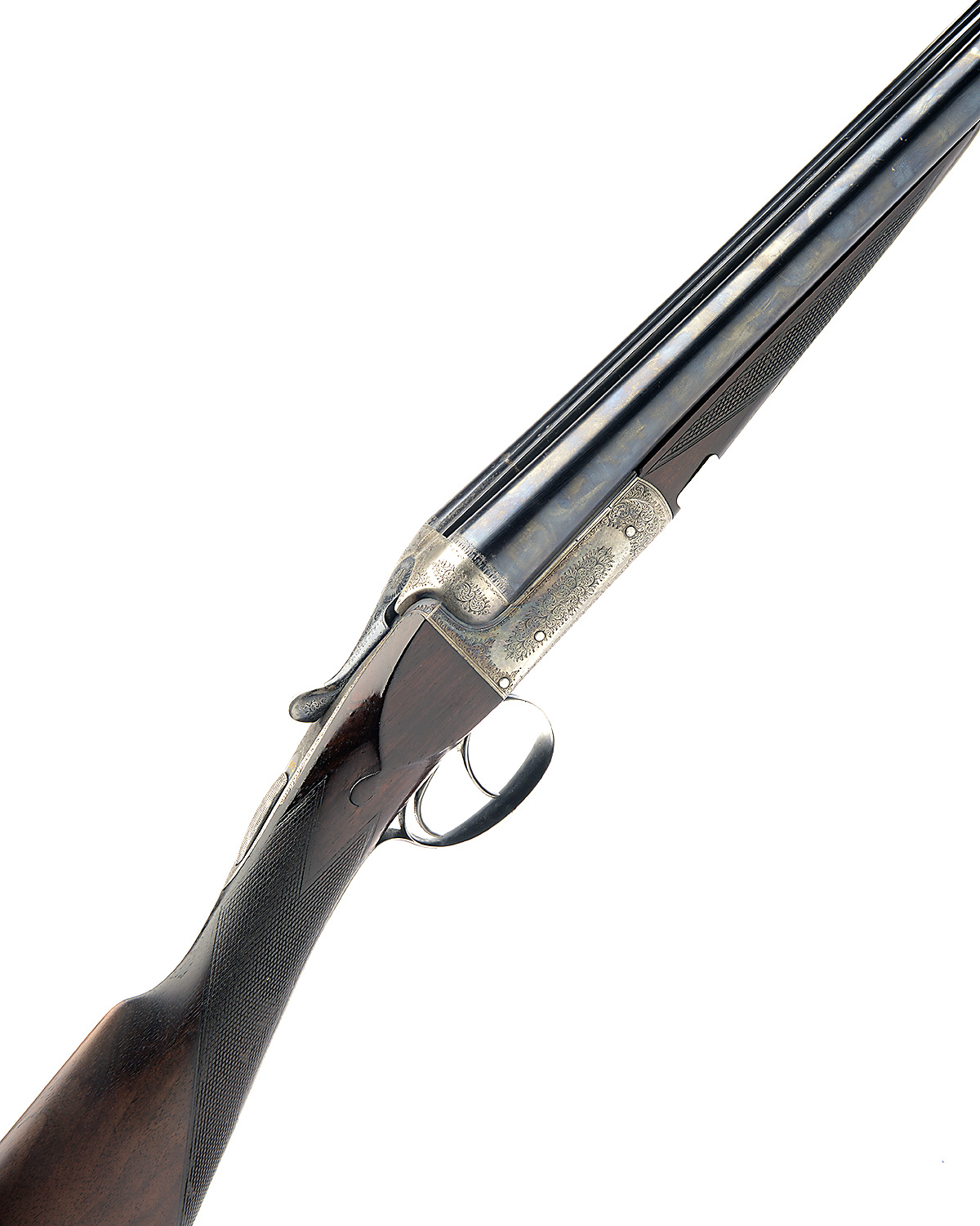 MIDLAND GUN CO. 12-BORE BOXLOCK EJECTOR, serial no. 26423, 30in. nitro barrels, the rib engraved 'MIDLAND GUN CO. BIRMINGHAM.' and '2' at the breech-end, 2 1/2in. chambers, bored approx. imp. cyl. and full choke, automatic safety with gold-inlaid 'SAFE' detail, treble-grip action with hidden third-bite, border and acanthus scroll engraving, retaining traces of colour-hardening and finish, triggerguard engraved '2', 15 3/4in. stock including 1 1/4in. wooden extension, weight 6lb. 13oz.