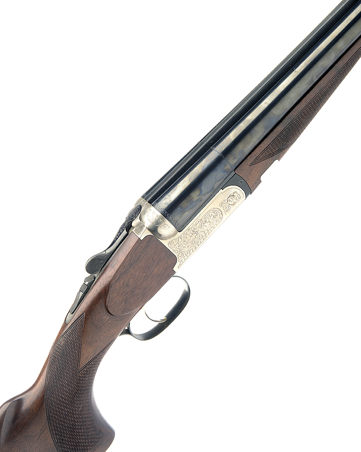 FABARM 12-BORE (3IN.) 'BETA LUX' SINGLE-TRIGGER BOXLOCK EJECTOR, serial no. 805215, 27 3/4in. nitro quadruple lump monobloc barrels with raised solid file-cut matt rib, 3in. chambers, multichokes (with spares), hold-open toplever, manual safety with integral barrel-selector switch, gold-washed trigger, border and acanthus scroll engraving, bright and blued finish overall, 14 1/4in. pistolgrip stock with palm swell and buttplate, weight 7lb. 1oz.