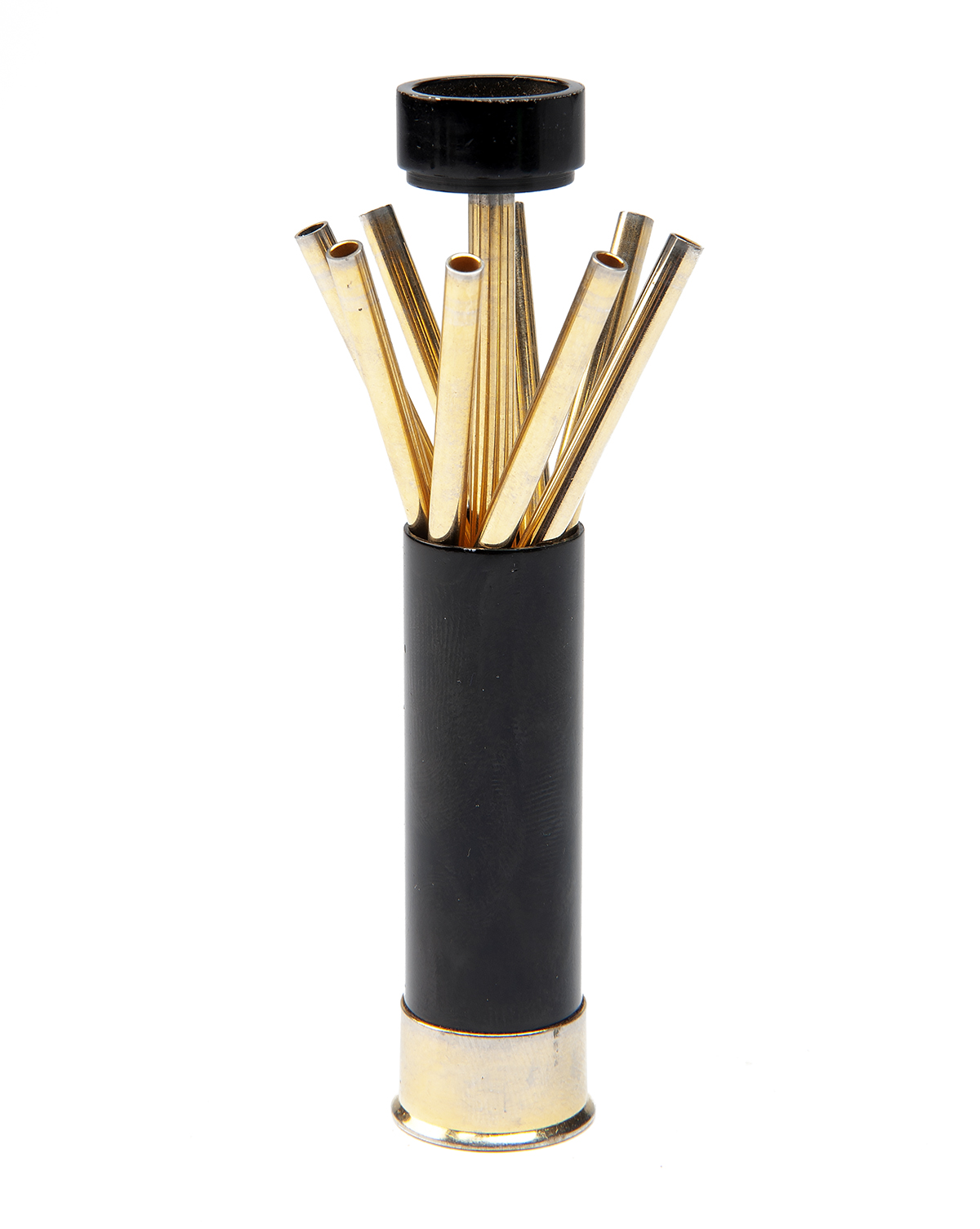 the body of all-brass construction with part-blued finish, eight numbered pegs presented as the top is lifted, brass headstamp with 'ASPREY LONDON MADE IN FRANCE', the top with brass wad marked '8'