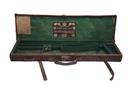 A CANVAS AND LEATHER SINGLE GUNCASE, fitted for 30in. barrels, the interior lined with green baize, a leather Joseph Lang & Sons Ltd. trade label, brass lock (key missing)