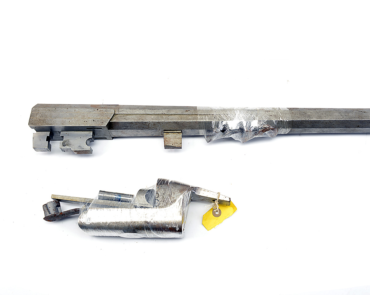 THE MAJOR PARTS OF A SUBSTANTIAL 2-BORE 'IN THE WHITE' ROTARY-UNDERLEVER SINGLE-BARRELLED HAMMERGUN, 55in. unchambered octagonal barrel, action with percussion fence, with a fore-end iron, underlever and two hammer forgings