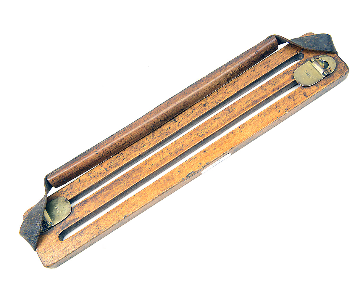 A VINTAGE JAMES DICKSON BRASS, OAK AND LEATHER DOUBLE GAME CARRIER,