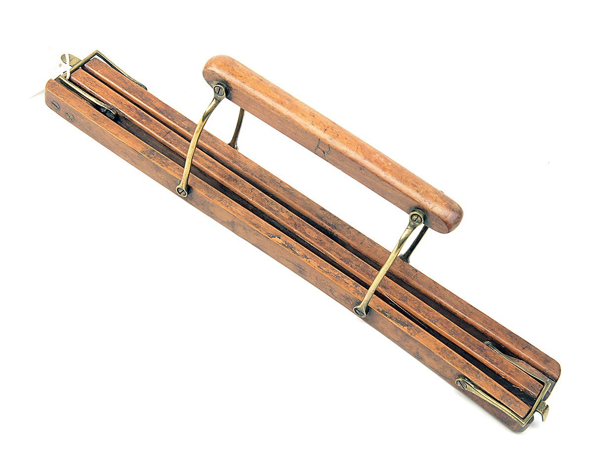 A VINTAGE G. & J.W. HAWKSLEY BRASS AND OAK DOUBLE GAME CARRIER,