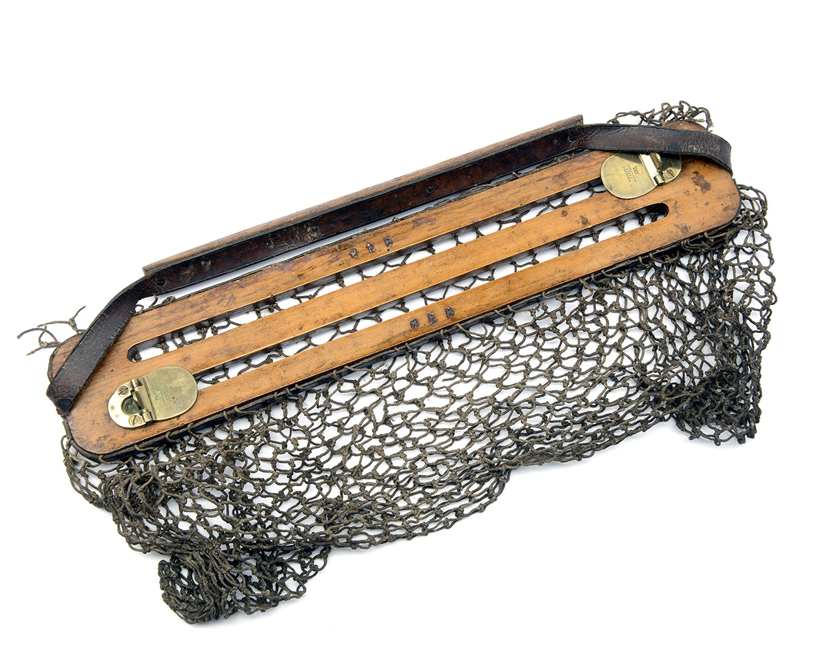 with brass clasps signed James Dixon & Sons Sheffield, with a catch net attached