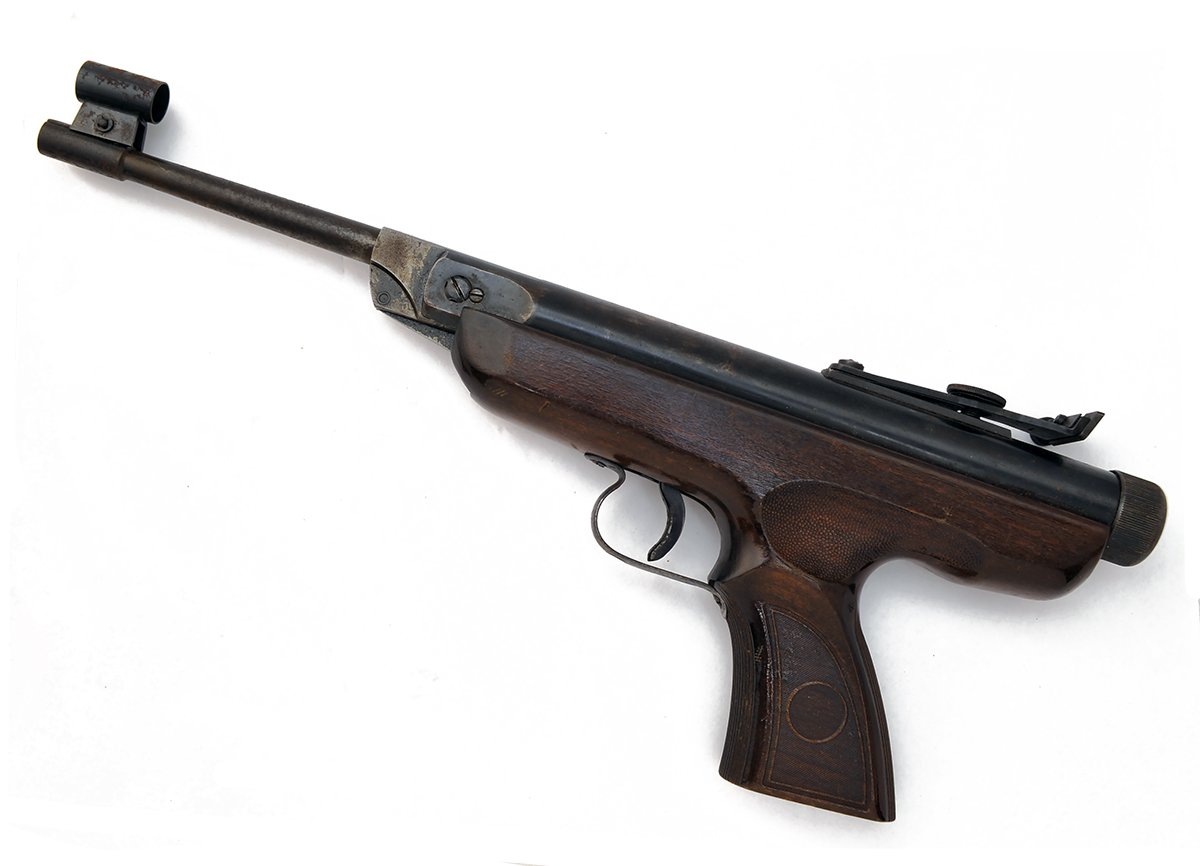 A .22 BREAK-BARREL AIR-PISTOL SIGNED ORIGINAL, MODEL '5', no visible serial number, with sighted 7 1/4in. barrel, plain air-chamber and wood receiver with integral grip, some loss to finish