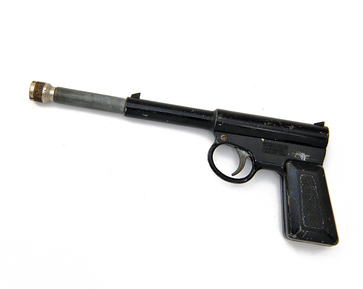A COLLECTION OF FIVE .177 PUSH-BARREL AIR-PISTOLS SIGNED T.J. HARRINGTON, MODEL THE GAT, no visible serial numbers,