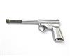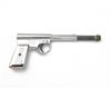 A COLLECTION OF FIVE .177 PUSH-BARREL AIR-PISTOLS SIGNED T.J. HARRINGTON, MODEL 'THE GAT', no visible serial numbers, including two late models with safes and broad alloy triggers, an intermediate model with narrow trigger, plastic barrel-shroud and no safe and an earlier type, similar but with alloy barrel shroud, all in black finish and finally a chrome model with alloy shroud and narrow trigger