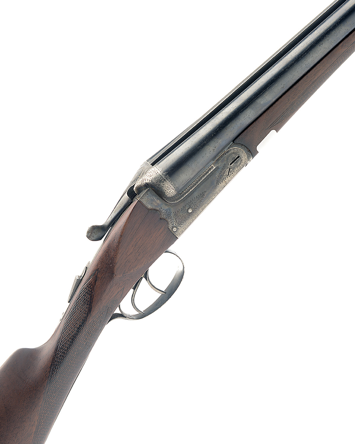SPANISH 12-BORE BOXLOCK NON-EJECTOR, serial no. 12370, 27 1/2in. nitro barrels, 21 3/4in. chambers, bored approx. 1/2 and full choke, bolstered scroll-back treble-grip action with hidden third bite, automatic safety, border and partial scroll engraving, retaining some original colour-hardening and finish, 14 1/4in. stock including buttplate