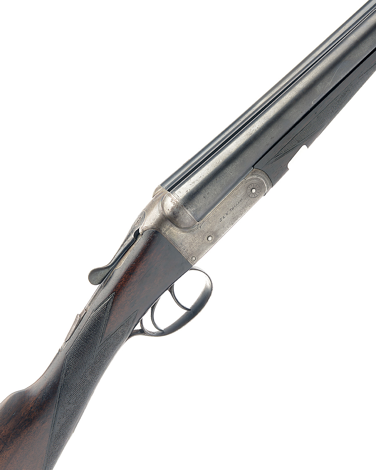 J. & W. TOLLEY 12-BORE BOXLOCK NON-EJECTOR, serial no. 89953, 28in. nitro reproved barrels, rib engraved 'J. & W. TOLLEY. BIRMINGHAM.', 2 1/2in. chambers, bored approx. true cyl. and 1/2 choke, automatic safety, border engraving, retaining traces of original colour-hardening and finish, 14 1/4in. stock