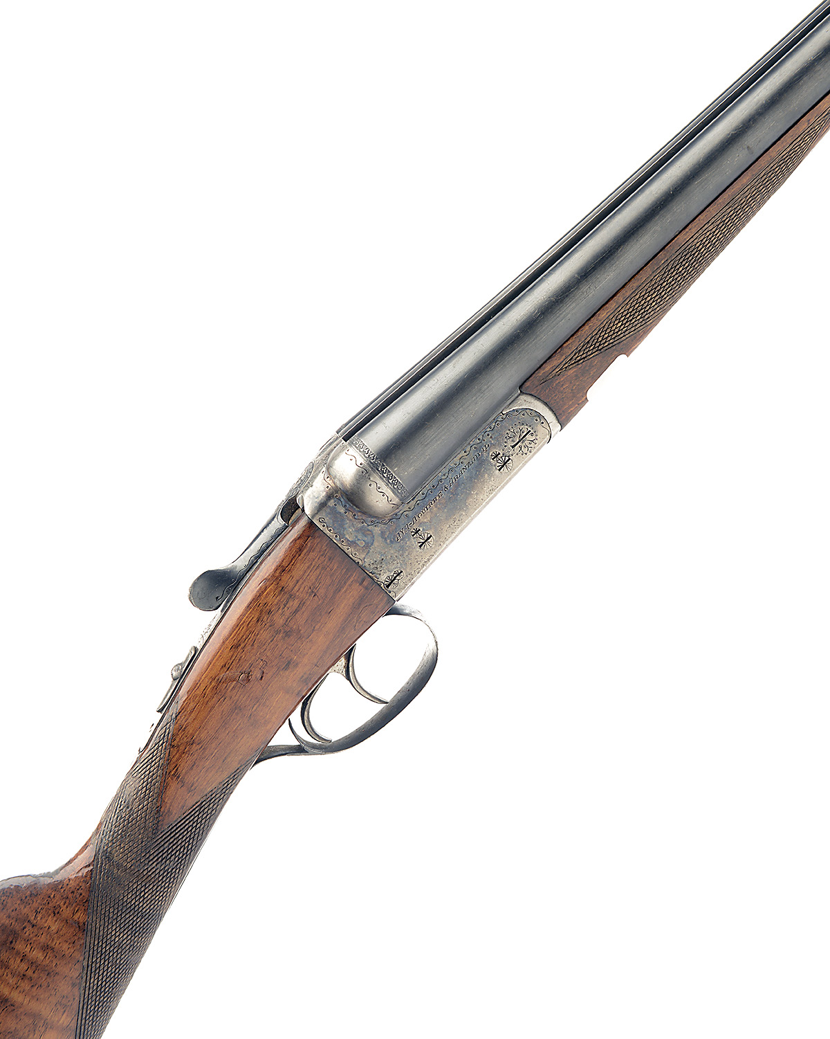 AYA 12-BORE 'MODEL NO.3' BOXLOCK NON-EJECTOR, serial no. 397844, 28in. nitro barrels, 2 3/4in. chambers, bored approx. 1/4 and 3/4 choke, removable striker discs, automatic safety with gold-inlaid 'S' detail, border engraving, retaining traces of original colour-hardening and finish, 14 3/4in. stock