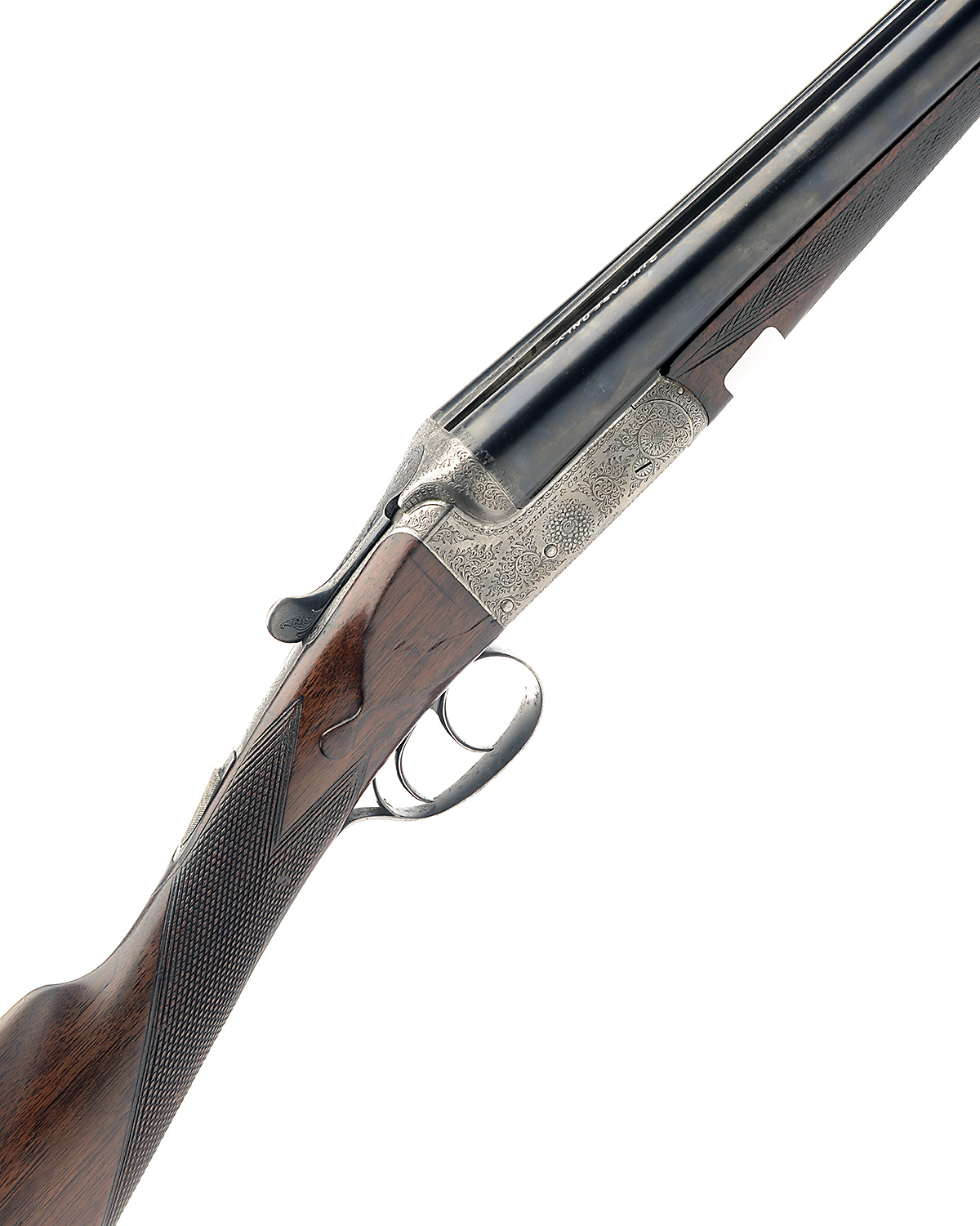 B. HALLIDAY & CO. LTD. 12-BORE (2IN.) BOXLOCK EJECTOR, serial no. 1942, 27in. nitro barrels (wall thicknesses well below recommended minimum), right tube silver-inlaid '2IN CASE ONLY' and the rib engraved 'B. HALLIDAY & CO. LTD. 63. CANNON STREET. LONDON E.C.', 2in. chambers, bored approx. 1/2 and 3/4 choke, automatic safety with silver-inlaid 'SAFE' detail, bouquet and scroll engraving, brushed and blued finish, 14 3/4in. stock, weight 5lb. 5oz.