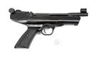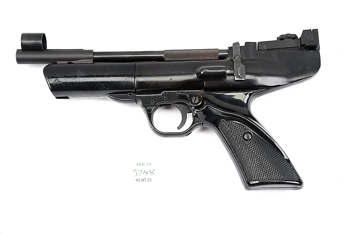 A CASED .22 BARREL-COCKING AIR-PISTOL SIGNED WEBLEY & SCOTT, MODEL 'HURRICANE', no visible serial number, with sighted 8in. barrel, cast alloy air-chamber, black plastic furniture, 11 1/2in. overall, in a black plastic case