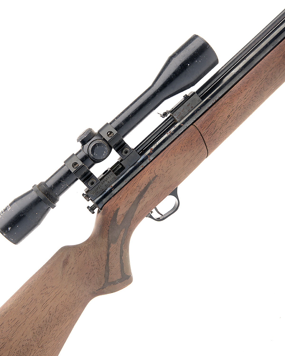 A SCARCE .177 MULTI-PUMP PNEUMATIC AIR-RIFLE SIGNED SHARP, MODEL 'VICTORY', serial no. A464421, with sighted 20in. barrel, push button release bolt, walnut butt-stock and fore-end, working but worn externally and fitted with a Hunter 4x40 telescopic sight