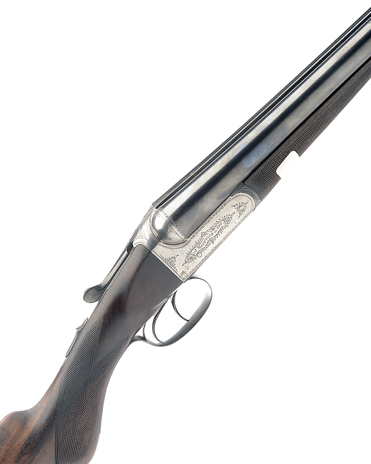 J. WOODWARD & SON 12-BORE BOXLOCK NON-EJECTOR, serial no. R1012, 28in. replacement nitro barrels, 2 3/4in. chambers, bored approx. 3/4 and full choke, automatic safety with inlaid 'SAFE' detail, border and acanthus scroll engraving, the makers name in a scrolling banner, brushed bright finish, 14 1/4in. semi-pistolgrip stock including buttplate, weight 6lb. 4oz.