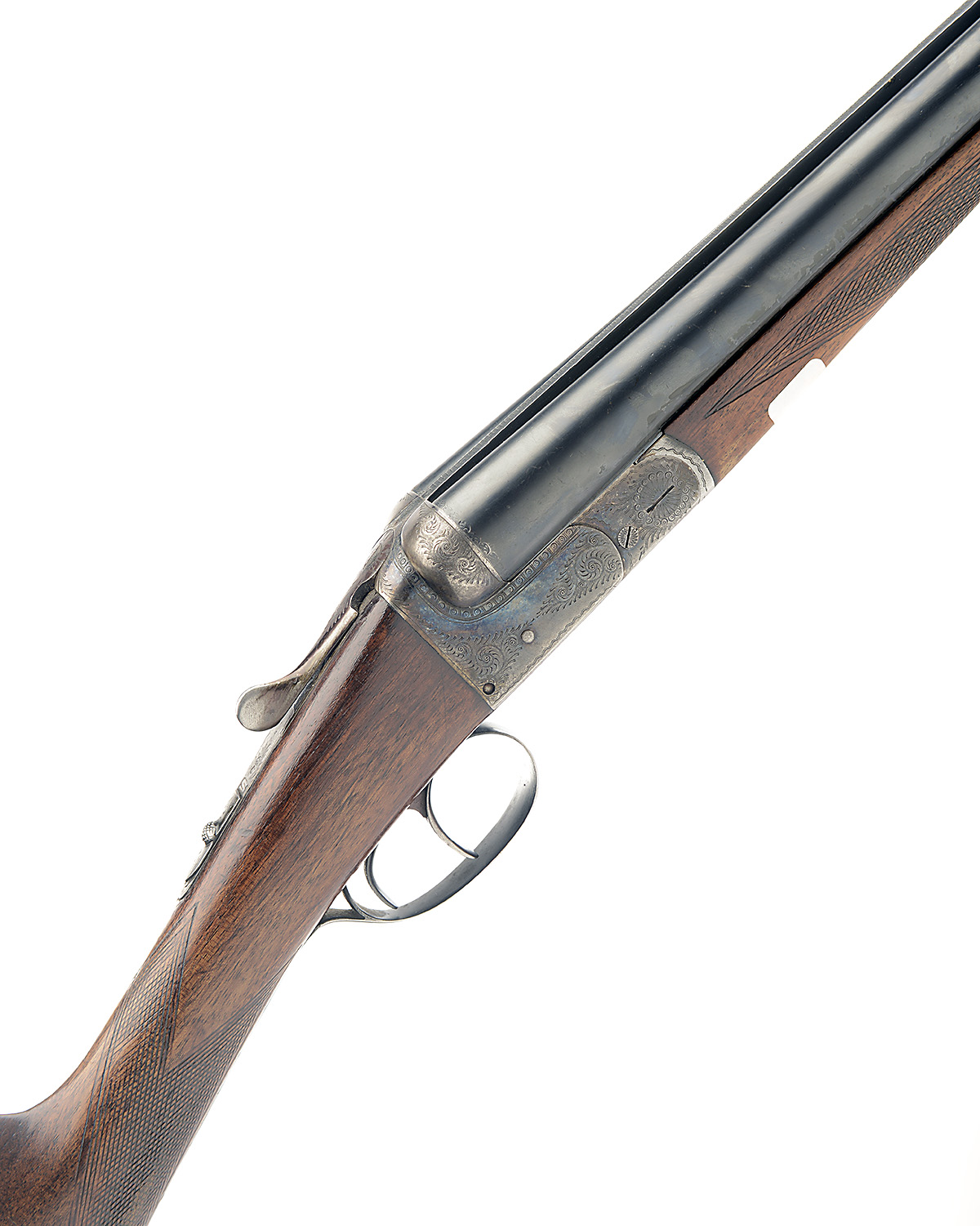 IGNACIO UGARTECHEA 12-BORE BOXLOCK EJECTOR, serial no. 72512, 27 3/4in. nitro barrels, 2 3/4in. chambers, bored approx. 1/2 and full choke, treble-grip action with hidden third bite, automatic safety, border and acanthus scroll engraving, retaining some original colour-hardening and finish, 14 1/4in. stock including buttplate