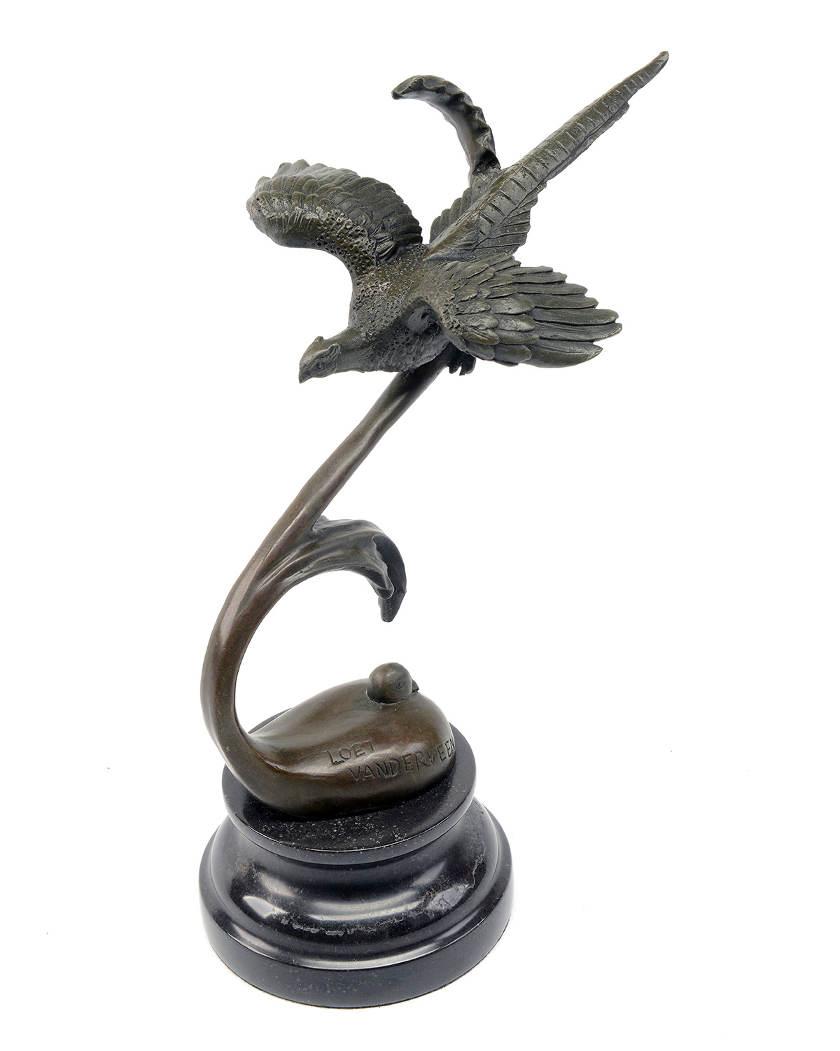 A LOET VANDERVEEN BRONZE SCULPTURE PHEASANT AND DOVE LOVE BIRD FIGURINE,